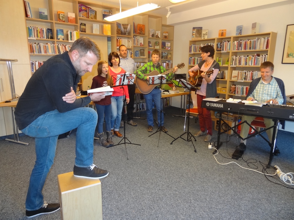 Die Musiker, die in Musikteams unsere Gottesdienste begleiten, haben einen Tag Training erlebt. Von musikplus, der Musikarbeit des evang. Jugendwerks in Württemberg waren Michael Krimmer und Markus Kern bei uns zu Gast. Die professionellen Musiker haben uns in Theorie geschult und dann das Üben mit wertvollen Tipps bereichert. So wurde an Arrangements gearbeitet, Grooves überlegt und dynamische Abläufe gestaltet. Auch für das Miteinander der Musiker war es ein schöner Tag. Wir freuen uns auf ihre Musik in den Gottesdiensten.