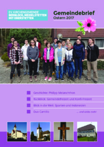 Der Gemeindebrief erscheint viermal im Jahr und gibt Ihnen einen kleinen Einblick über die aktuellen Ereignisse der Gemeinde. In kurzen Berichten werden vergangene Veranstaltungen und Freizeiten wiedergeben. Zudem finden Sie unter Anderem immer die aktuellen Erfahrungsberichte unserer Missionare.